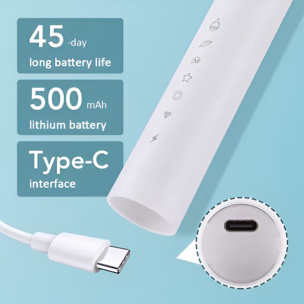 📏 21 x 2.5 cm, 6 valymo režimai – balta, juoda, USB įkrovimo laidas ir vartotojo vadovas įtraukti