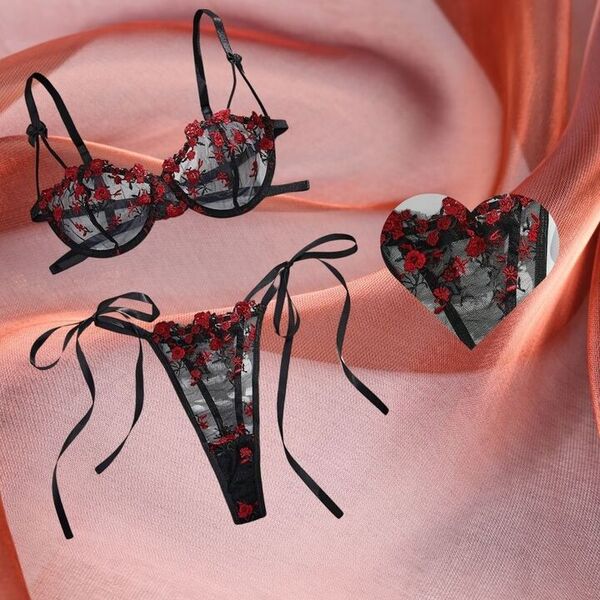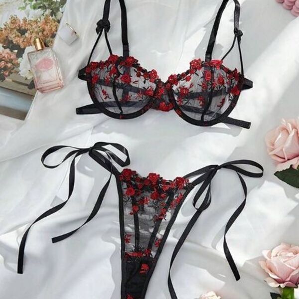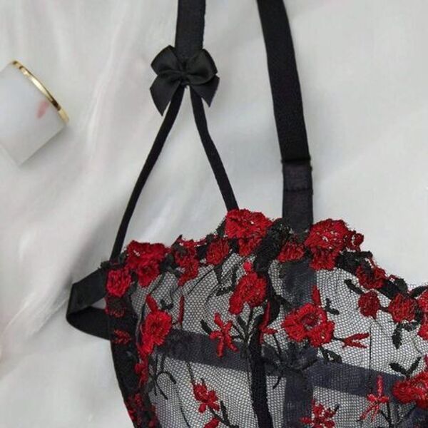 Pasilepinkite seksualių gėlių siuvinėjimų ant permatomo audinio žavesiu, suteikiančiu jūsų intymiems drabužiams moteriškumo ir elegancijos.