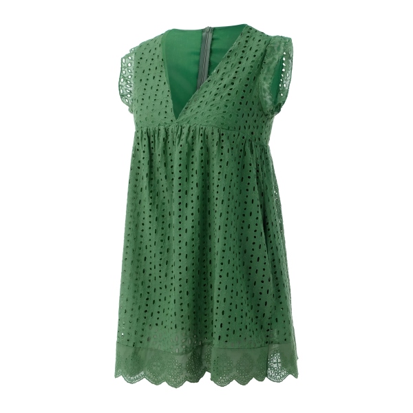 Šią suknelę derinkite su aukštakulniais, kad atrodytumėte puošniai, arba su sandalais, kad atrodytumėte neįpareigojančiai ir laisvai. Žaismingos akutės ir mažos detalės suteikia suknelei smagumo ir lengvumo, todėl ji tinka įvairiems įvaizdžiams. Ją puikiai tinka papuošti akiniais nuo saulės ir skrybėle, kad sukurtumėte vasarišką nuotaiką.