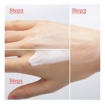 2 ŽINGSNIS: Išspauskite tinkamą kiekį skystos pudros ant rankos nugarėlės. Naudodami teptuką, kempinėlę arba pirštų galiukus, švelniai paskirstykite pudrą nuo veido centro link kraštų, kad pasiektumėte tolygų ir natūralų rezultatą.